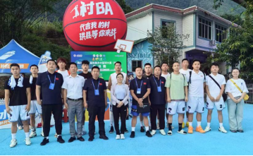 丁堃(右一)参与四川省第三届和美乡村篮球大赛总决赛参赛球队一对一联络员工作