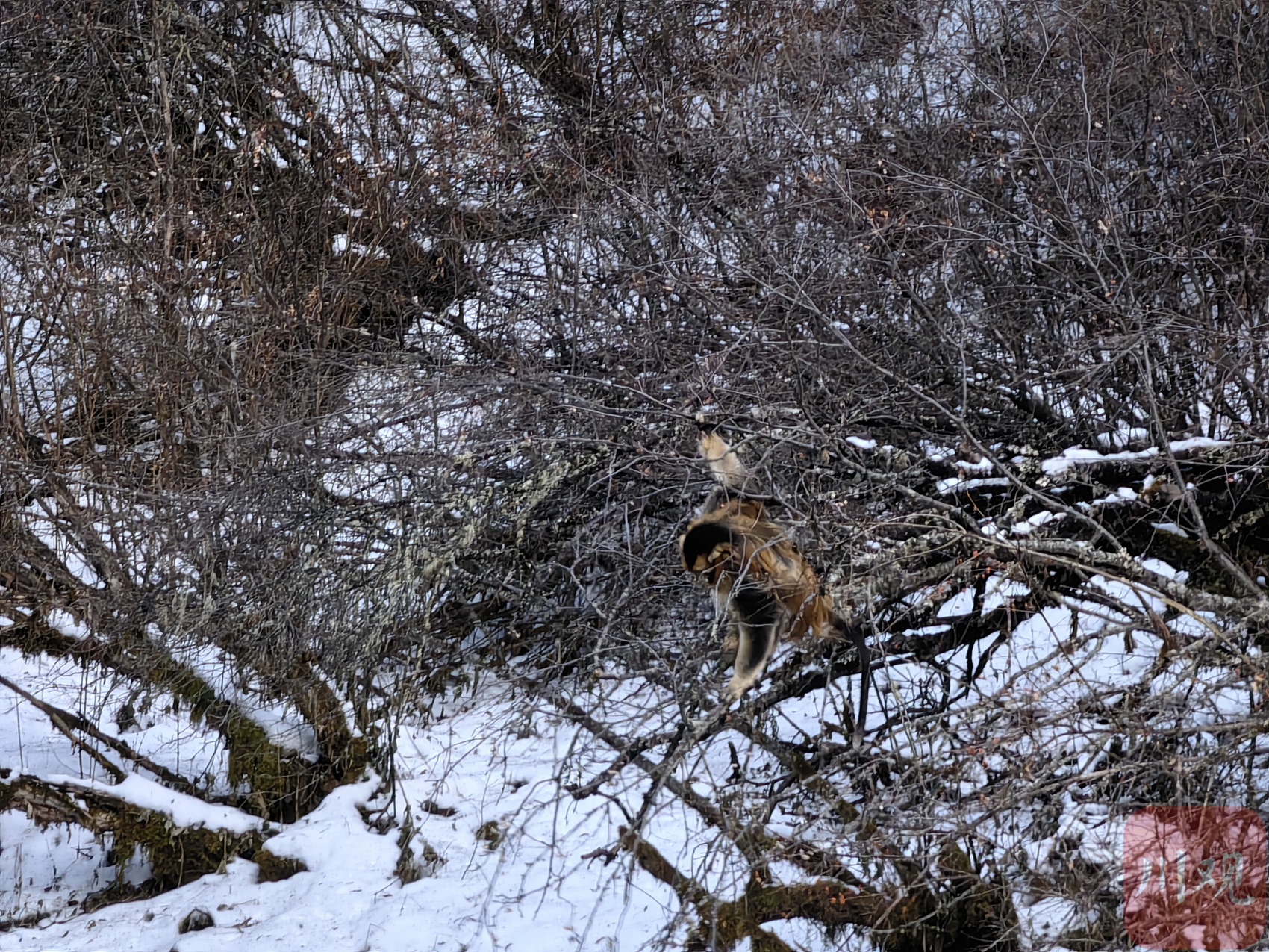 记录显示,白雪之中,这只川金丝猴身影矫健,在湖畔的原始林间灵活跳跃、自由穿梭,并不时驻足以嫩树叶为食,行为泰然自若,状态良好。