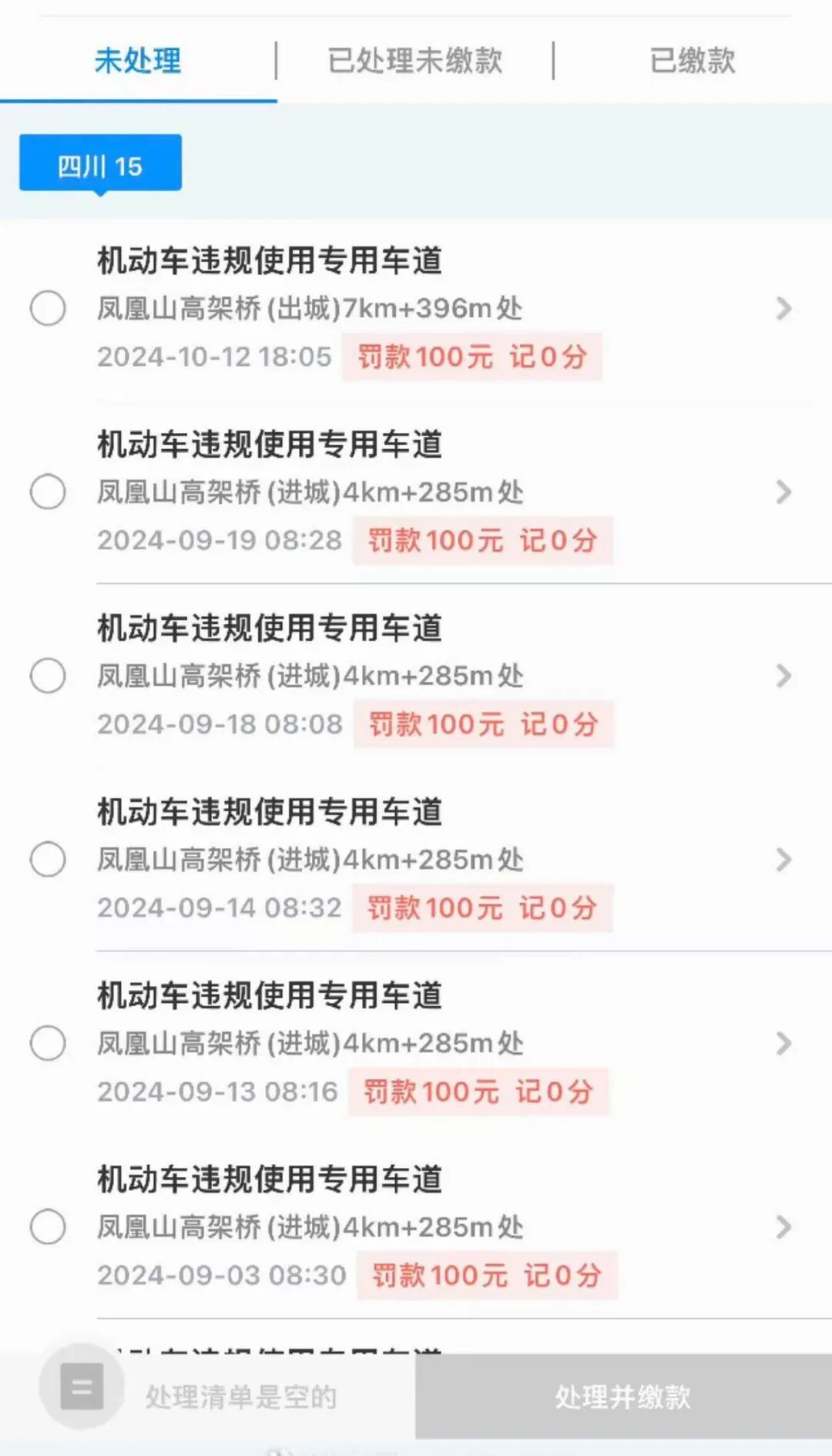 小观看到这一串罚款记录