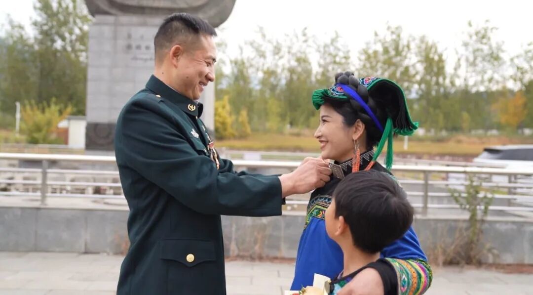 没过多久,带着满身荣誉的约其依落出现在亲友的视线里,他身姿挺拔,胸前的勋章与证书熠熠生辉。他坚定地喊道:“老婆同志!原中国人民解放军火箭军约其依落,2007年12月入伍,2025年12月服役期满,已退出现役,请指示!”话语中,带着哽咽。“老公,欢迎你回来!”这句话,在沙梅心里默念了无数次、练习了无数遍,结婚十年后,终于脱口而出。两人深情相拥,沙梅小心翼翼地从口袋里掏出提前做好的荞麦馍馍,约其依落眼眶湿润。