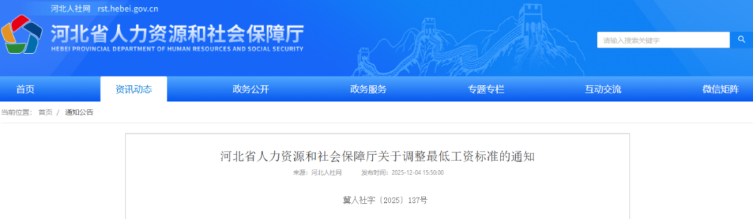 河北省人力资源和社会保障厅最新发布关于调整最低工资标准的通知↓↓↓
