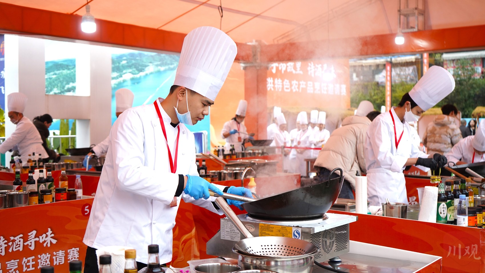羊肚菌的清香、红酱的热辣、洋姜的脆爽……比赛现场香味四溢,来自北京、上海、广州等各地40余组选手同台竞技。