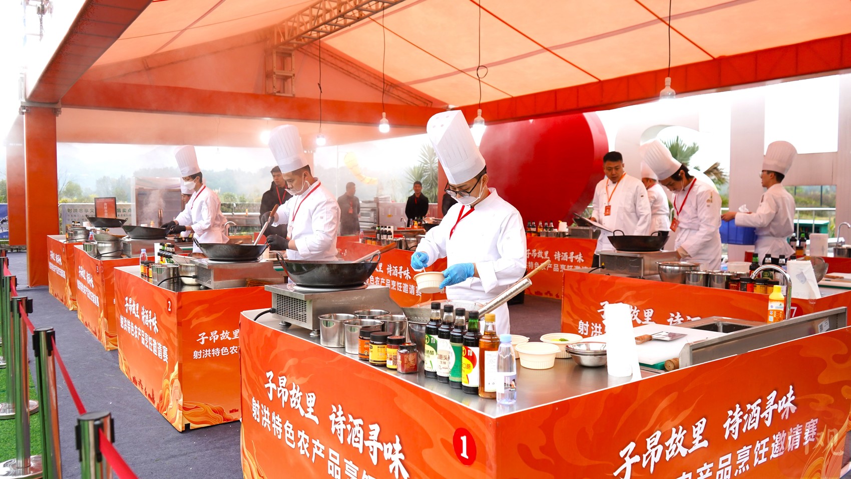 既展厨艺匠心,又推地方好物。当天,烹饪邀请赛共分四轮进行,赛事要求选手在90分钟内,使用赛事指定的射洪特色农产品——射洪红酱、射洪粉条、洋姜、羊肚菌、白羽肉鸡中的至少一款,现场制作两款主料不同、烹饪技法不同、风味各异的作品。