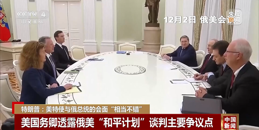 当地时间12月2日,俄罗斯总统普京与到访俄罗斯莫斯科的美国特使威特科夫和特朗普的女婿库什纳就“和平计划”举行会谈。参与会谈的俄罗斯直接投资基金总裁德米特里耶夫于莫斯科时间3日凌晨会谈结束后在社交平台发文称,与美国特使威特科夫及库什纳的会谈“富有成效”。