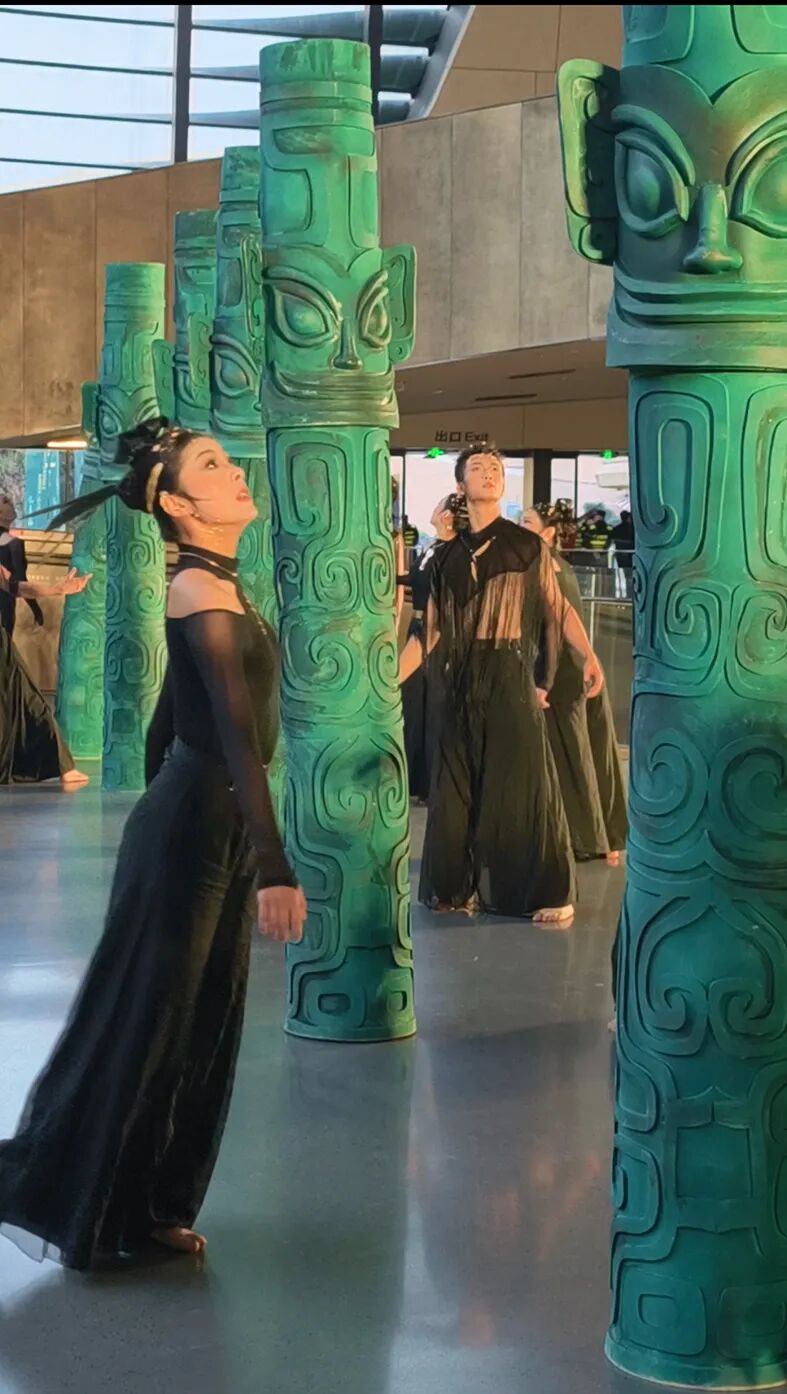 本次环境舞蹈季(四川站)总导演杨畅分享了创作心得:“三星堆文化充满谜团,这种未知性为艺术提供了充沛的想象空间,就像青铜大立人、青铜神树等文物有太多细节可以挖掘,创作团队多次深入博物馆调研,从文物造型、纹饰中汲取灵感,让每一个舞蹈动作都成为解读古蜀文化的‘活态符号’,在现代艺术理念与古老文明的碰撞中展开无限遐想。”