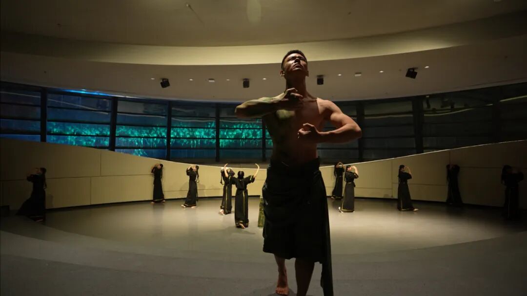 随着环境舞蹈演出在博物馆的陈列馆广场、螺旋楼梯、下沉空间等多元区域上演,构建出“一步一景、一舞一境”的沉浸式美学体验。舞者以肢体为媒介,将艺术表达与空间场景、文物气质深度融合。观众漫步其间,近距离欣赏《塑骨》《稚水微澜》《垂直纪元》《蜀·丝启》《梦回三星堆》等作品,在独特的氛围中感受艺术与历史的同频共振。
