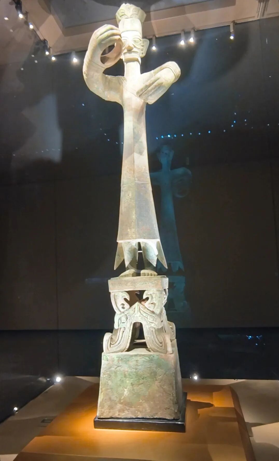 “看舞者模仿青铜纹饰的动作,感觉就像文物上的纹路‘活’了,配合灯光音乐,仿佛穿越到了青铜时代。”一位观众难掩震撼。另一位年轻观众则感慨:“舞蹈的每一个动作就像在‘破译古蜀密码’,这种新颖的形式让我同时感受到文物与舞蹈的双重魅力。”在互动环节,不少观众热情参与,在肢体的律动中与古蜀先民“隔空对话”。