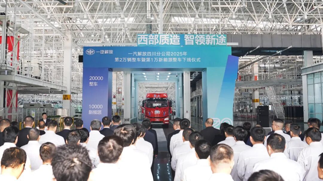一汽解放四川分公司2025年第2万辆整车暨第1万辆新能源整车下线。受访者供图
