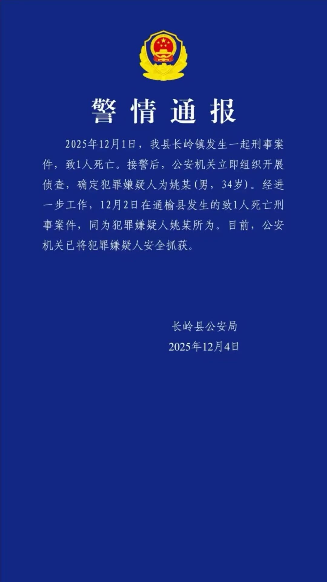 12月4日下午,吉林省松原市长岭县公安局发布警情通报: