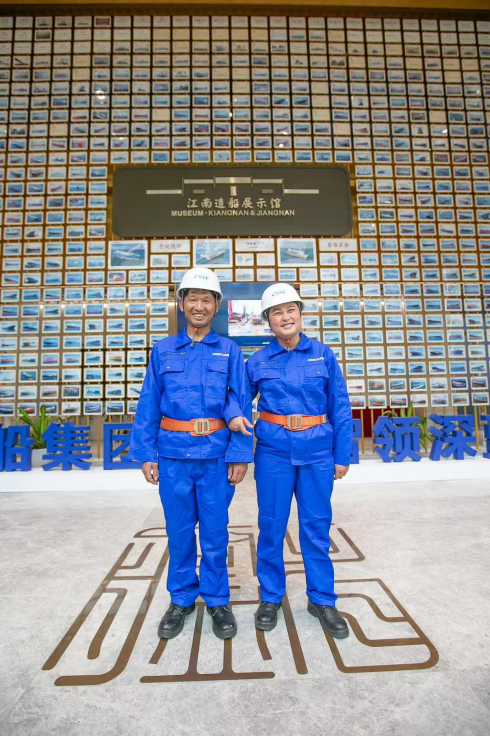 杨兆云、鲁国美夫妇在江南造船展示馆前合影。受访者 供图