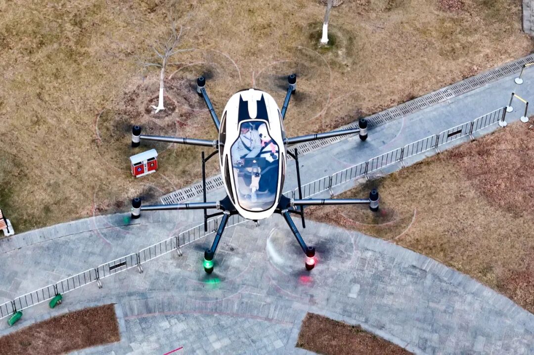据悉,这款来自亿航智能的EH216-S机型是全球首个,也是目前唯一“四证”(生产许可证、型号合格证、标准适航证及运营合格证)齐全的载人垂直起降无人驾驶航天器,载客量为2人,最大飞行速度可达130公里每小时。