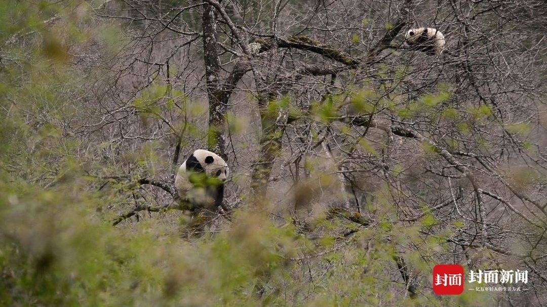 2024年4月2日,大熊猫国家公园唐家河片区的工作人员在持续四年的大熊猫野外繁殖行为专项调查中,首次观测到一只大熊猫幼崽及其母亲的活动场景。大熊猫母子同框 王超摄
