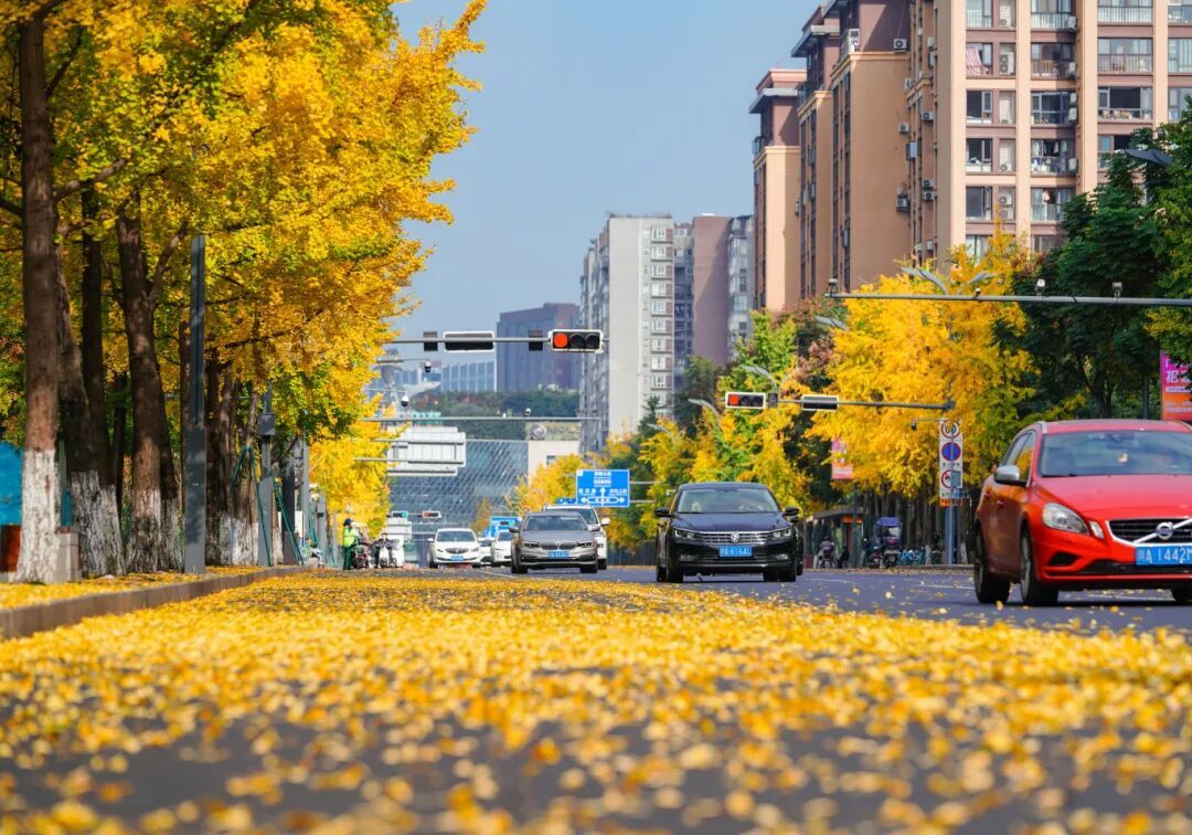 “落叶缓扫”政策第5年,成都市根据气候变化情况和银杏等树木色彩变化情况,对68条重要路段实行“一街一策”精细化环卫清扫保洁。
