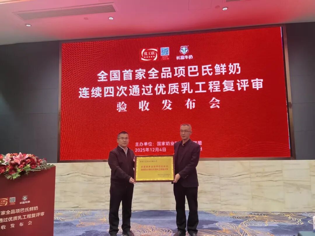 全国首家!12月4日,福建长富乳品有限公司成功通过优质乳工程复评审,成为全国首家连续四次获此殊荣的企业。
