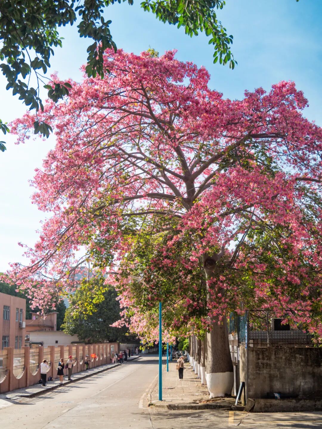 大家争相和这棵异木棉中的“顶流”合照。
