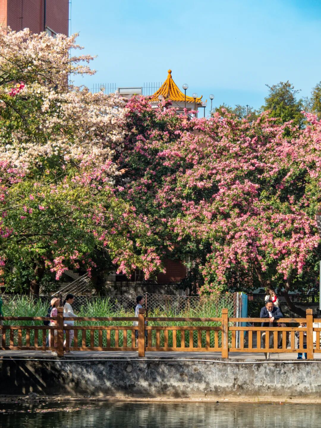 除了这处有名的白花异木棉外,华师校园内还集中种植了百余株粉色异木棉,也值得一并观赏。