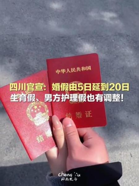 四川官宣:婚假由5日延到20日 #最新消息 #四川婚假延长 #新政策出来了