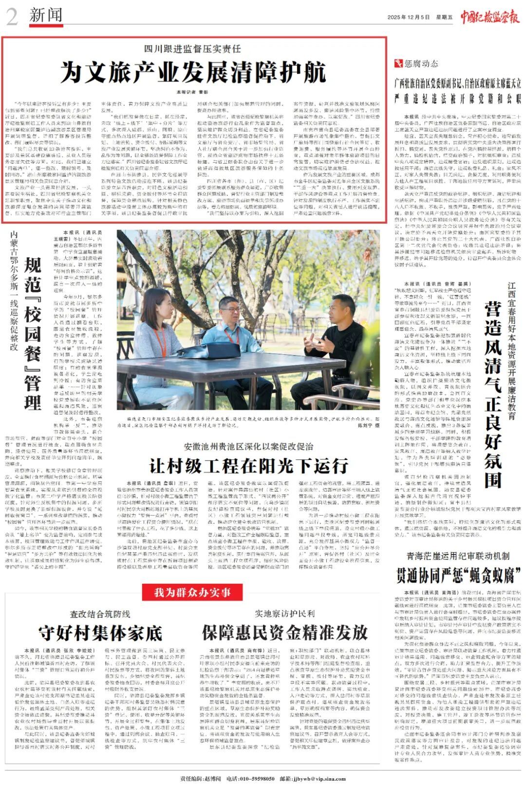 2025年12月5日,《中国纪检监察报》新闻版刊发《四川跟进监督压实责任 为文旅产业发展清障护航》。
