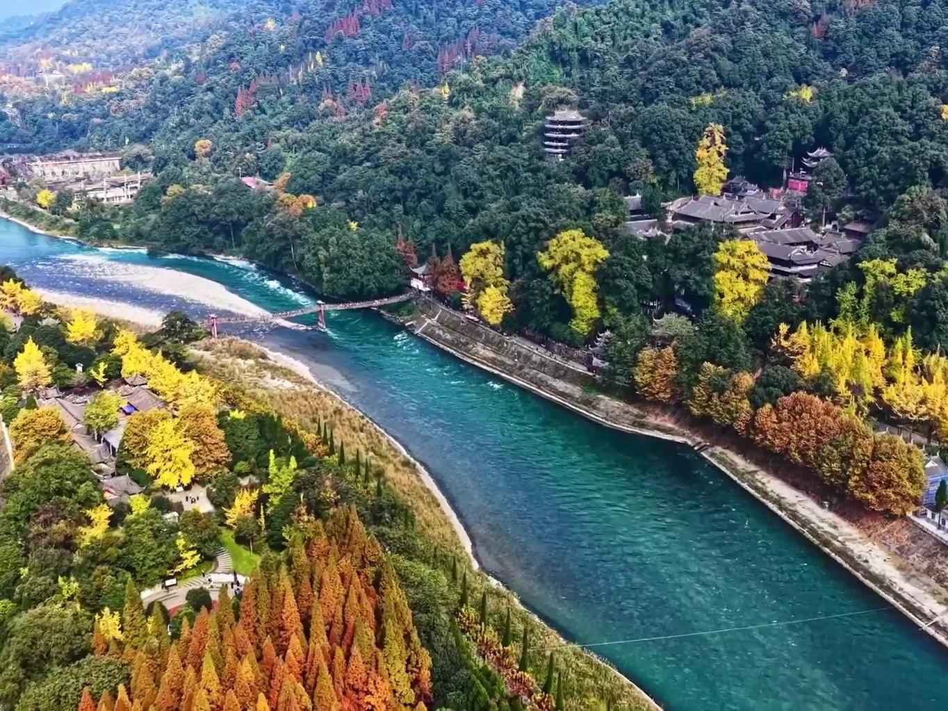 初冬的都江堰,苍山掩翠!都江堰之水清澈见底,永远透着梦幻般的蓝色,非常非常适合中法元首非正式会晤!