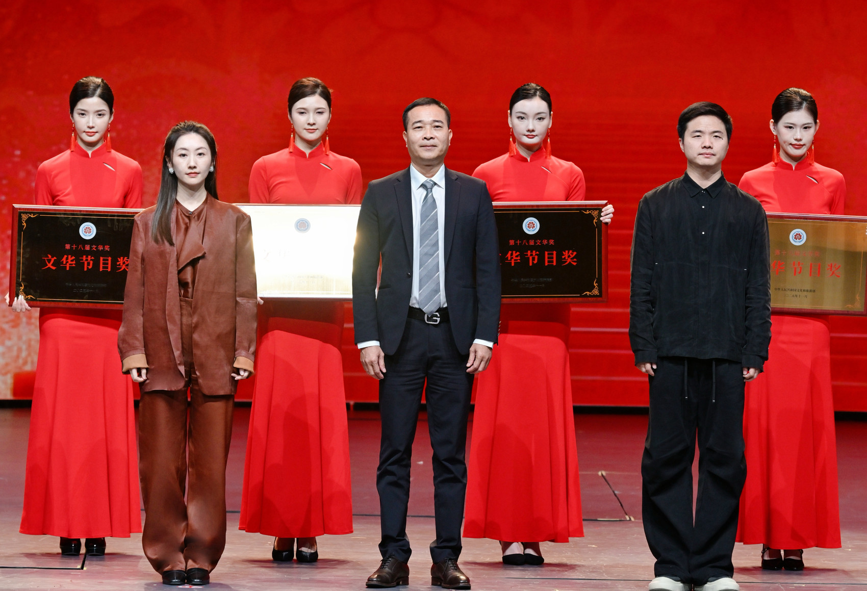 第十四届中国艺术节上,《玉盘》获文华节目奖,谭淇尹(前排左一)在领奖。受访者供图