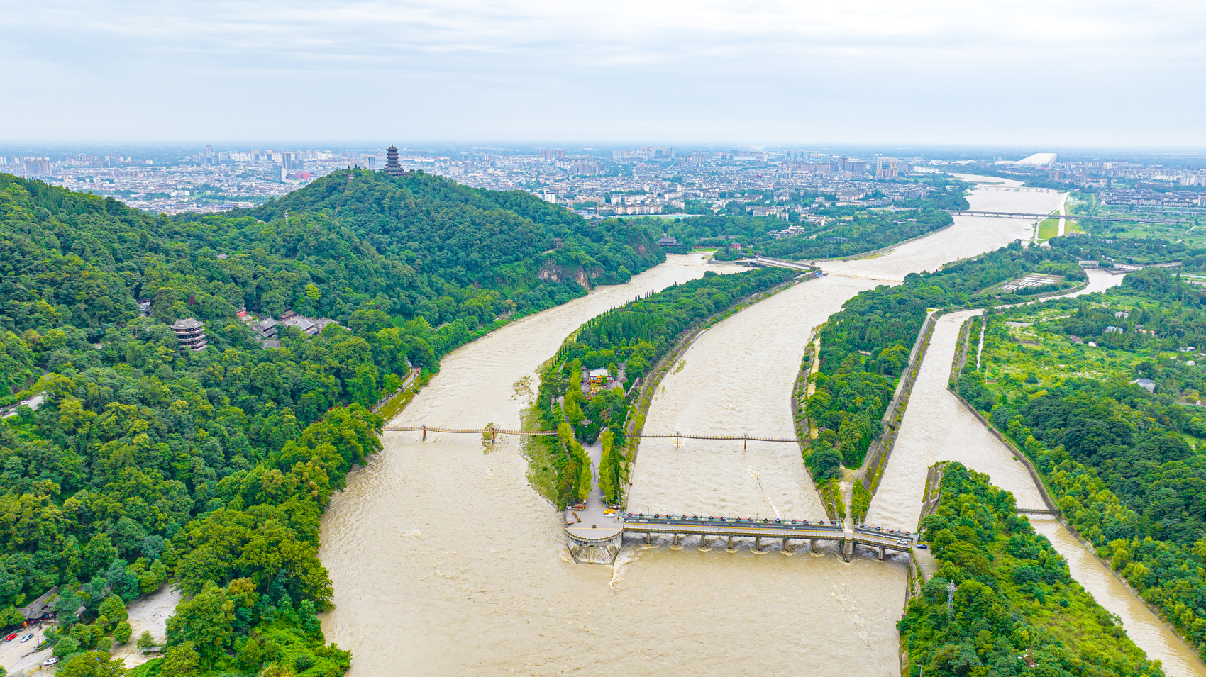 “鱼嘴分水堤”“飞沙堰溢洪道”“宝瓶口进水口”——都江堰的三大主体工程相互承接、浑然一体,既可以引水灌溉,又可以分洪减灾、排沙防淤。“乘势利导、因时制宜”的设计哲学,体现着古人先进的治水理念,承载着代代相传的守护精神,蕴含着人与自然和谐共生的中国智慧。