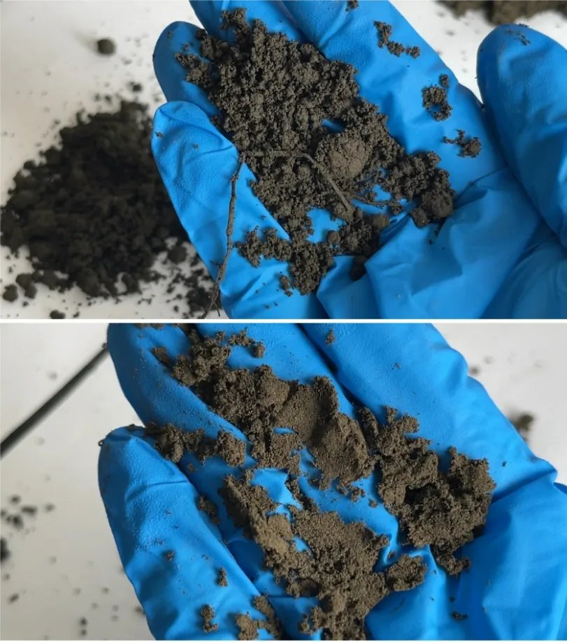 送检出重金属超标的营养土样品,多呈黑渣状。
