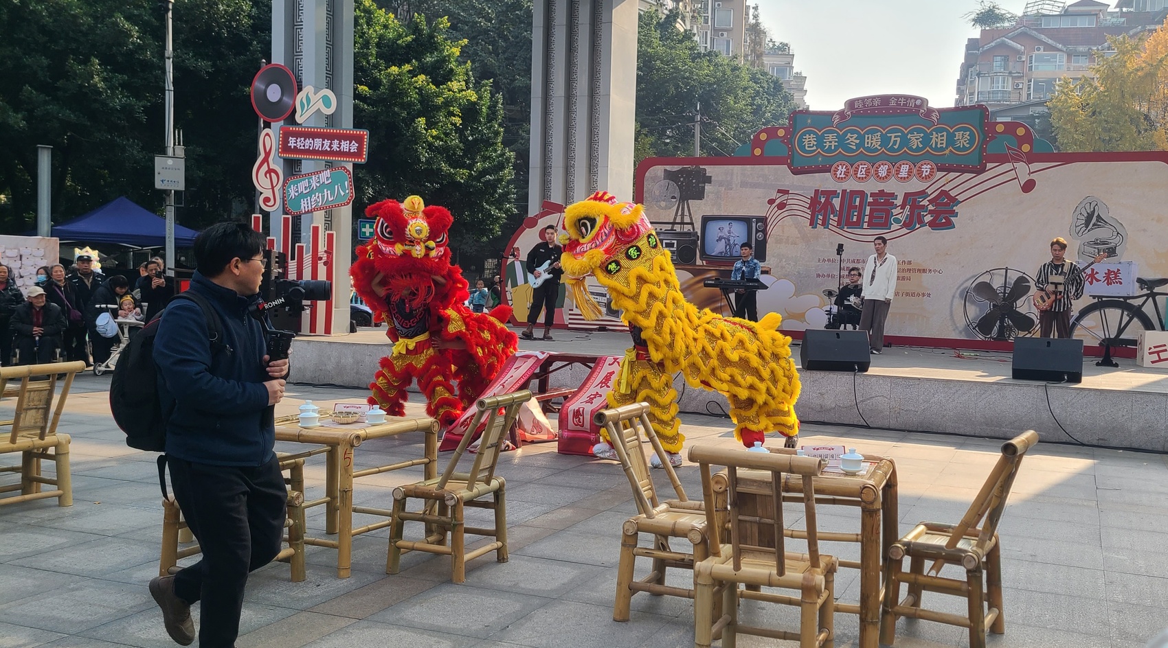 插电乐队准时登场,《红日》《爱如潮水》等怀旧经典曲目接连上演,居民和声共鸣。音乐声中,夕阳洒落,暖意流淌,邻里围坐,成了冬日里最治愈的浪漫时刻。