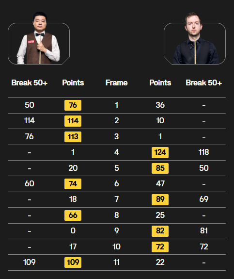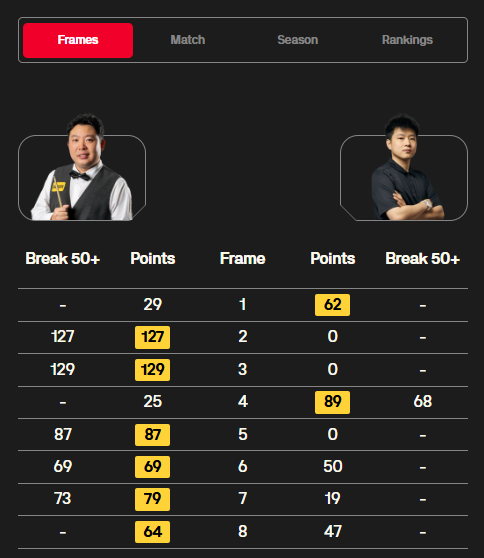 本届英锦赛,中国共有7名选手进入16强,几乎占据半壁江山。不过在16进8的轮次过后,仅剩3名中国选手。在前一个比赛日中,吴宜泽1比6不敌尼尔·罗伯逊,无缘八强;庞俊旭则6比3力克马克·威廉姆斯,顺利晋级八强;斯佳辉3比6不敌特鲁姆普,无缘八强;周跃龙2比6不敌塞尔比,同样无缘八强。