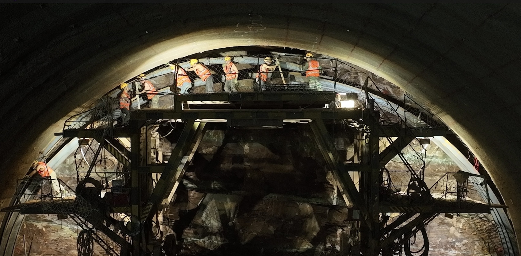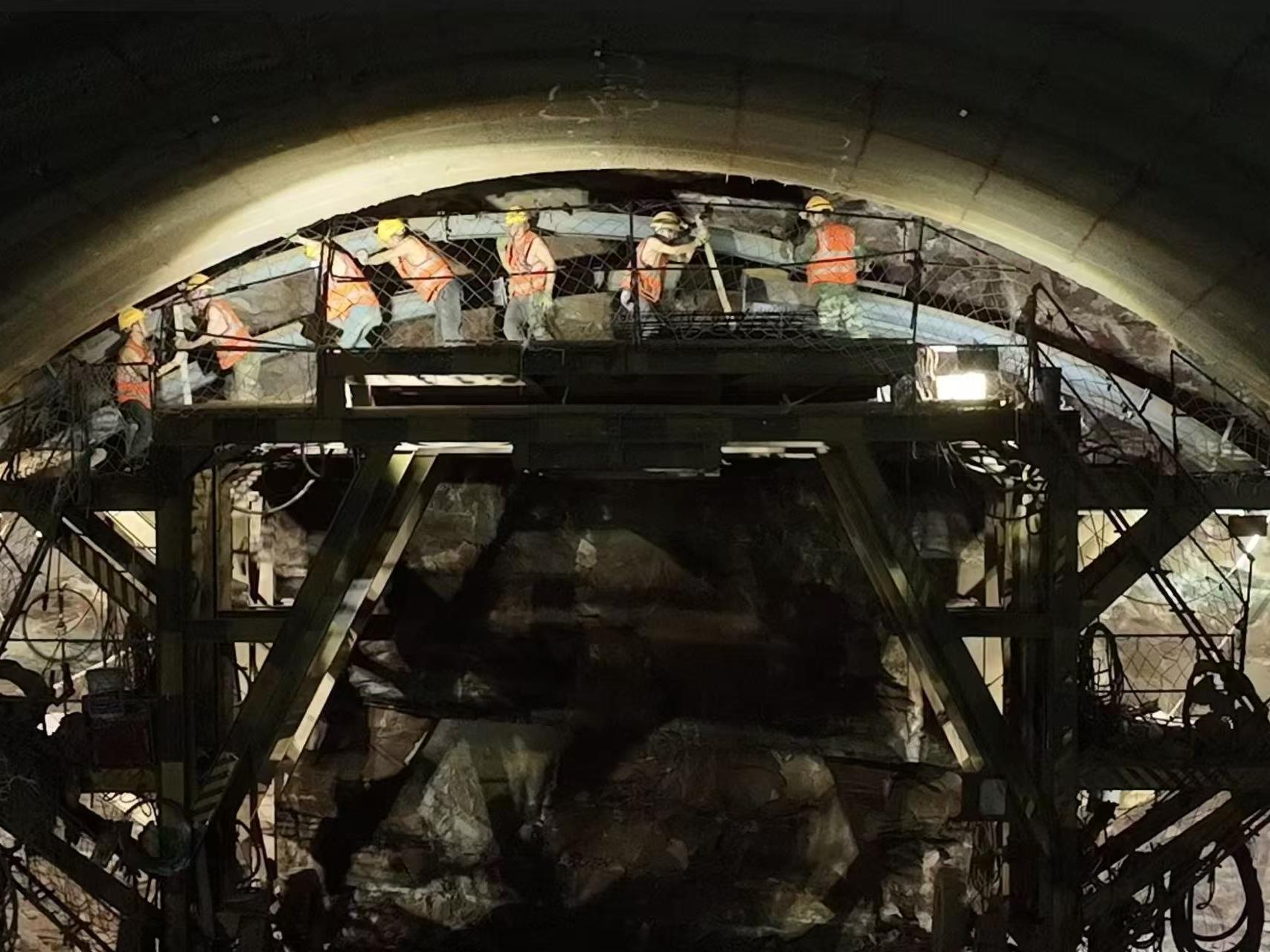 项目团队打出技术攻坚与生态保护的组合拳。针对复杂地质,团队精准研判围岩特性,成功攻克围岩破碎、集中涌水、断层带穿越等多项技术难题;同时创新采用“零开挖”进洞技术,最大限度留存米仓山大峡谷的原生地貌与生态肌理,实现进度与生态的双向共赢。