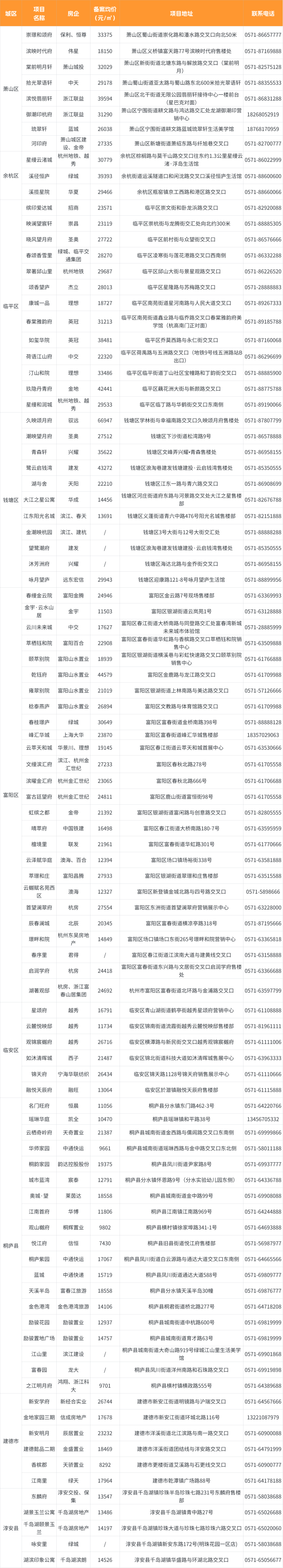 从萧山区钱江世纪城旁到余杭区未来科技城,从富阳银湖到临安青山湖,共98个新房项目参与活动,覆盖不少热门区域。