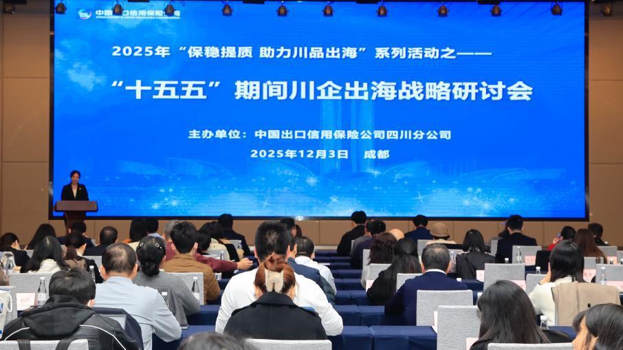 12月3日,作为中国出口信用保险公司四川分公司(以下简称中国信保四川分公司)2025年“保稳提质 助力川品出海”系列活动之一的“十五五”期间川企出海战略研讨会在成都举行。此次研讨会旨在深入探讨“十五五”期间四川企业国际化发展路径,吸引了来自四川金融机构、外经贸企业的200余名代表参加。