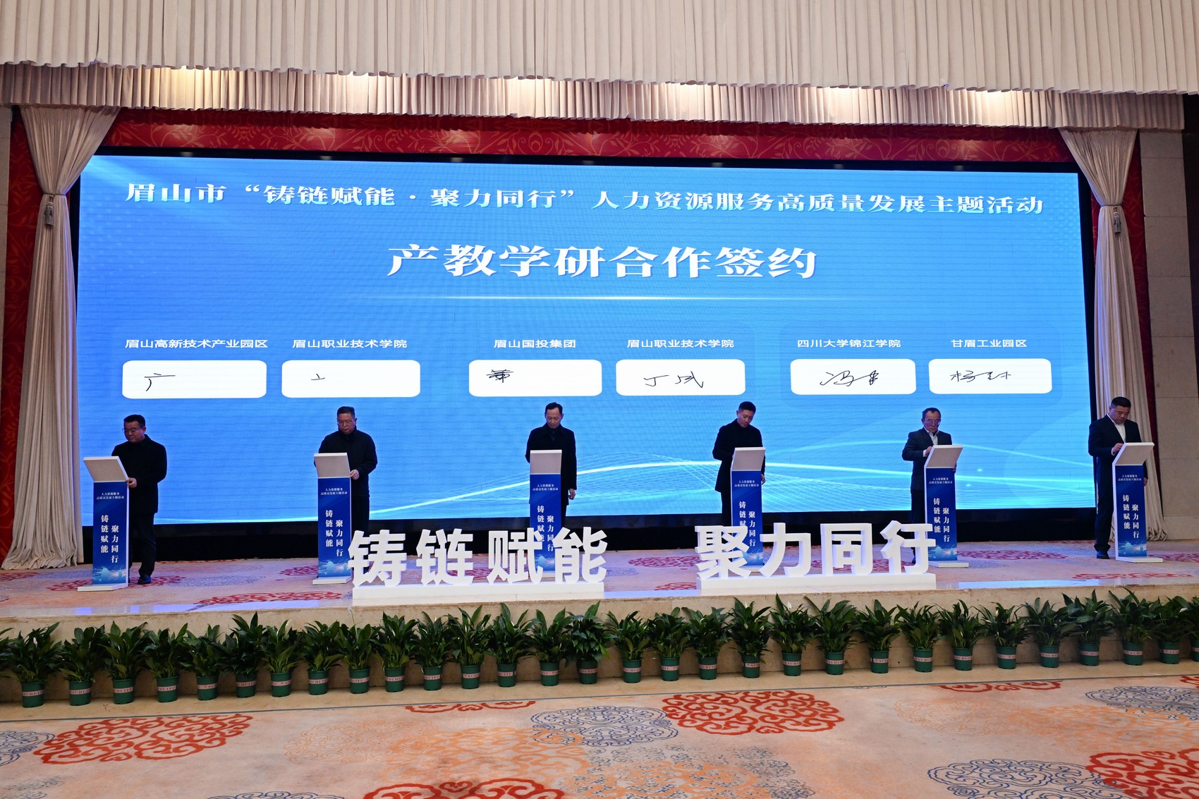 “此次签约为眉山技师学院集团服务地方产业发展搭建了更优质平台,将助力集团培养更多契合眉山产业需求的技能人才。”眉山技师学院集团是此次签约单位之一。作为该集团牵头单位之一眉山技师学院技师教育学院院长张彬介绍,长期以来,集团始终通过学制教育与社会培训双路径赋能地方产业发展。在学制教育方面,紧扣产业发展需求动态调整专业设置;在社会培训方面,针对企业实际需求开展定制化培训,为眉山经济高质量发展筑牢人才保障。