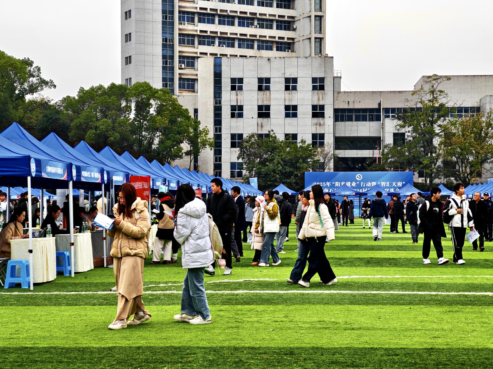 12月4日,2025年“阳光就业”行动暨“智汇天府”西南石油大学2026届毕业生双选会在西南石油大学南充校区举行。本次活动由四川省人力资源和社会保障厅主办,四川省人才交流中心、南充市人力资源和社会保障局、西南石油大学联合承办,重点面向2025年高校毕业生和离校未就业困难人群等,吸引了南充各高校3000余名学子和群众踊跃参与。