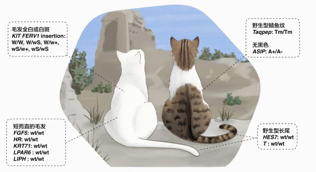 基因组分析复原了唐朝统万城遗址出土的中国目前已知最古老的家猫的外观——一只纯白或白斑狸花公猫,短毛长尾,且不携带现代家猫常见的遗传缺陷。