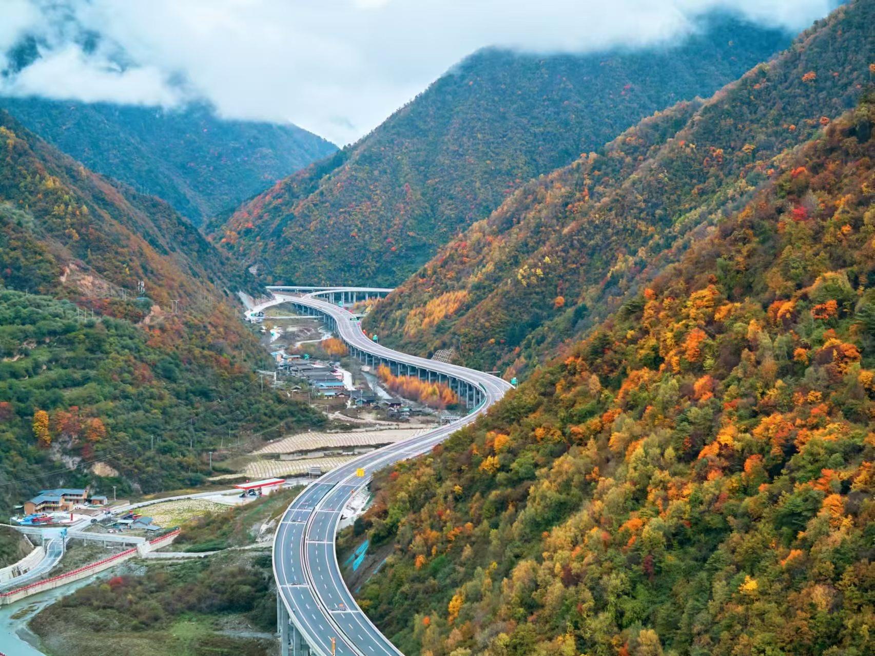 穿行在山间的高速公路。