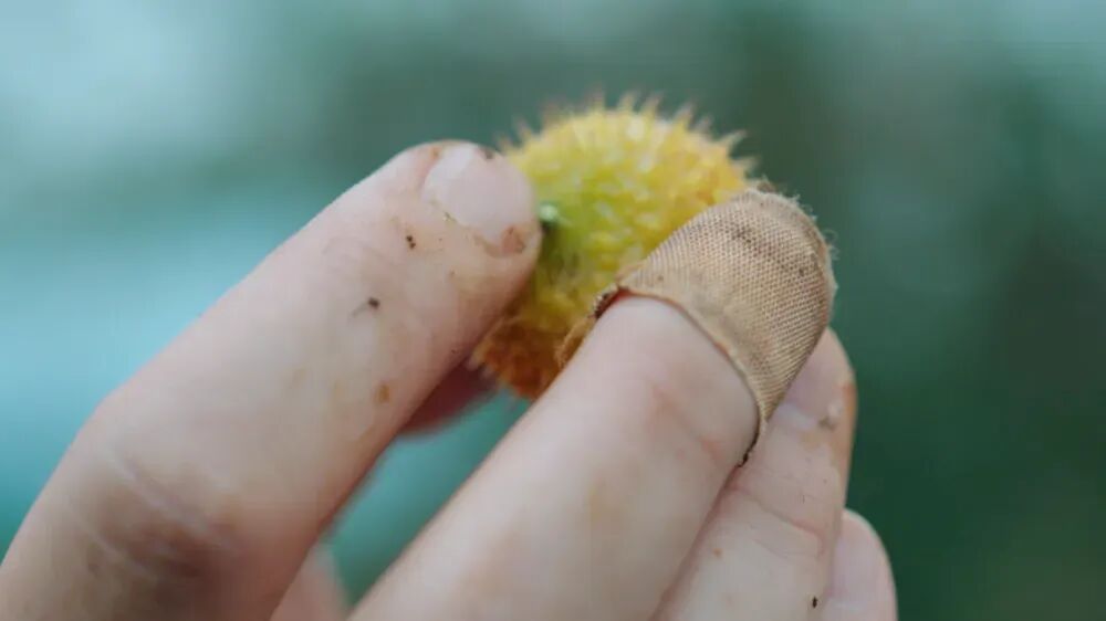 在导师焦小强和鲁敏指导下,王朋强在龙凤村拼凑了3亩刺梨地,分5块试验田做对比试验。他每天像侦探一样仔细观察叶片和枝干,拿样本到实验室化验。山上农机用不上,剪枝施肥除草耕地全靠自己,一双手被刺梨扎得伤痕累累,背着喷雾器撒肥肩膀被压出血印,天降大雨导致叶面施肥被冲刷,他也只能重来。