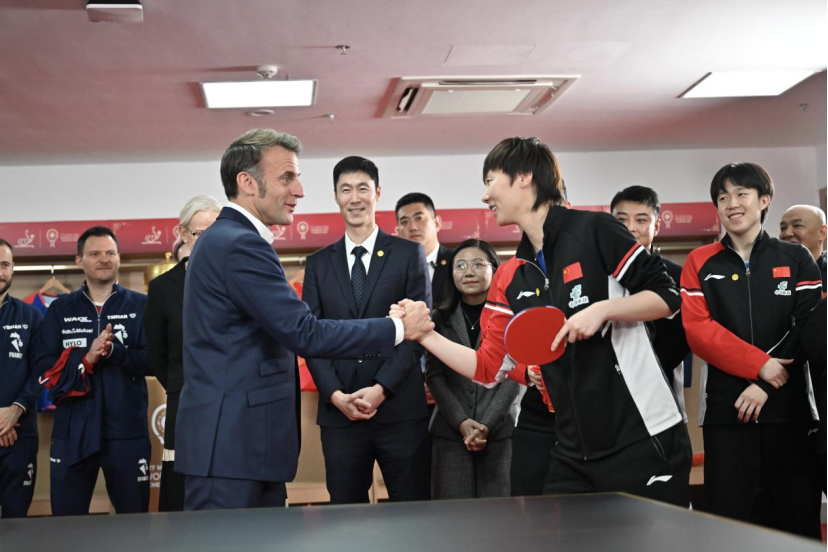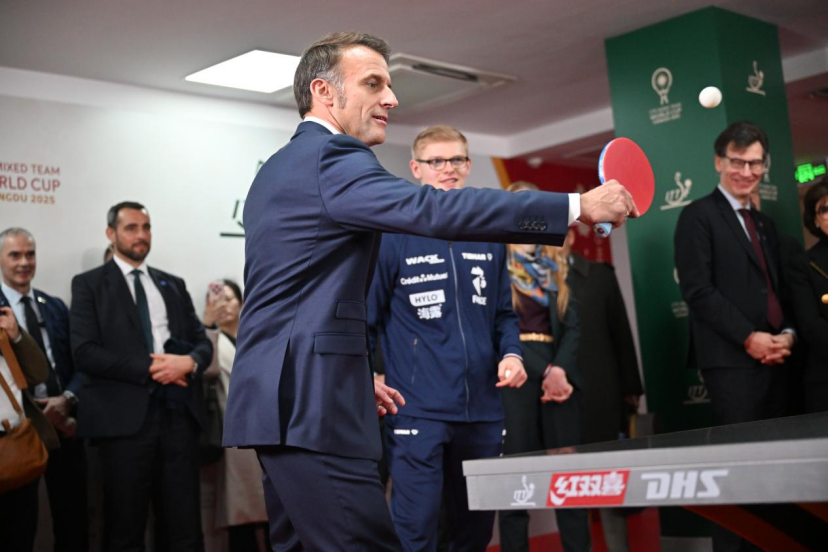 随后,马克龙到访2025年成都国际乒联混合团体世界杯赛场,会见了法国队与中国队成员。