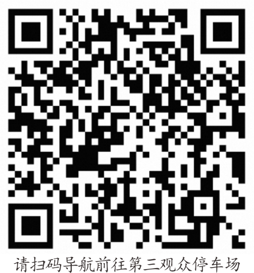 设在奥体中心地下停车场。观众车辆经西四环地面层(或长椿南路)——博体路——进奥体中心南门——按照管理人员指挥进入地下停车场停放;退场时,车辆可经奥体中心西、北、南三个地下停车场出口驶出(建议从西门和南门驶出,驶出后可驶入西四环高架向南、北方向驶离活动现场)。请扫描下方二维码导航前往停车场。该停车场饱和后,请根据交警及工作人员指挥或导航提示,前往其他停车场停放。