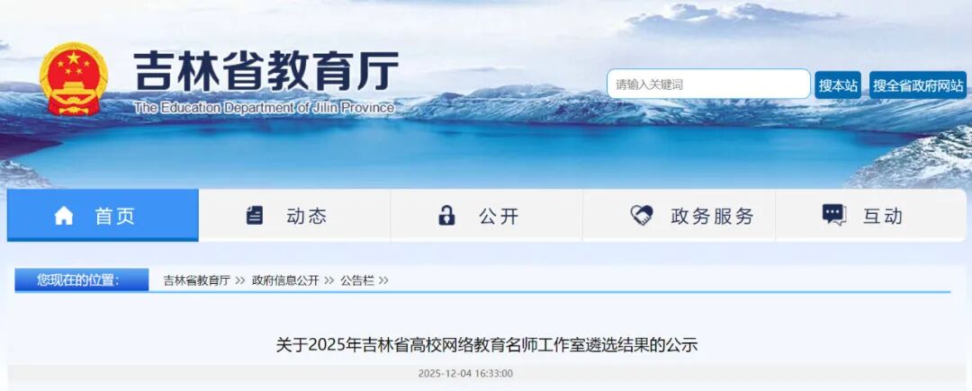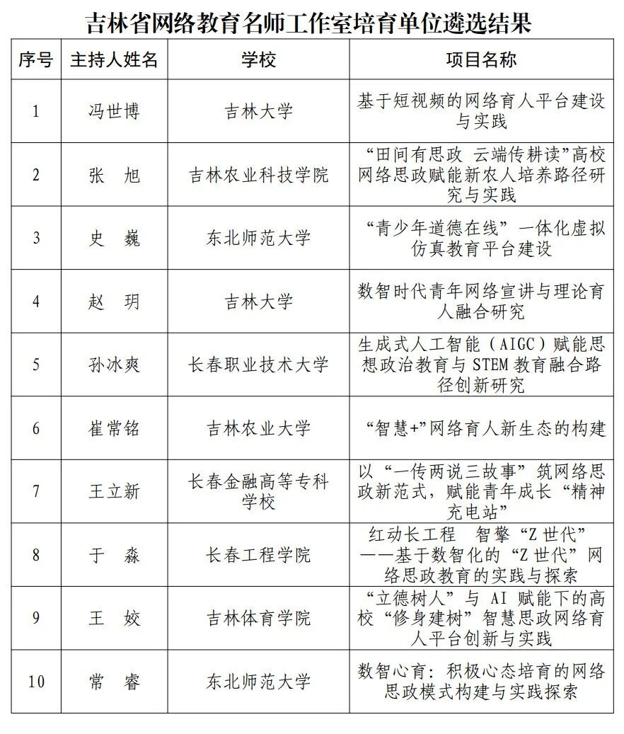 原文标题:关于2025年吉林省高校网络教育名师工作室遴选结果的公示