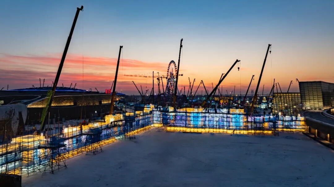 目前,还有多个冰雪建筑,也在不断刷新“进度条”:梦想大舞台、中华巴洛克街区景观群已全面动工开建;位于南售检票大厅外广场的大型主题雪雕“童话小马一家”正在全速雕刻,可爱的童话小马已初见轮廓。