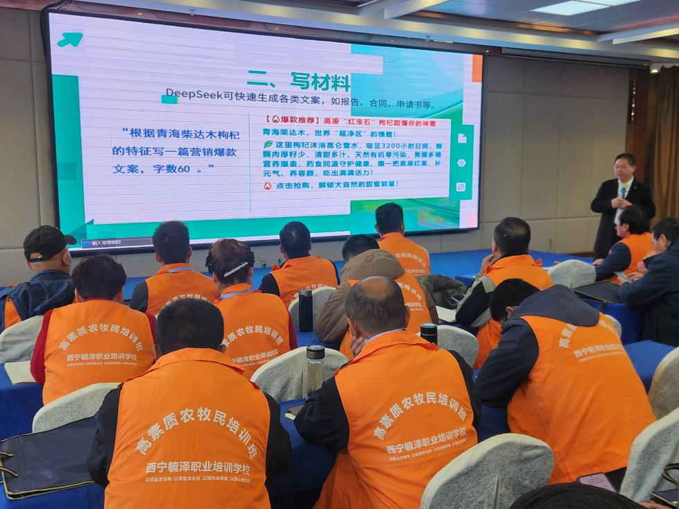 培训班专设智慧农业模块,聚焦AI技术在现代农业生产中的实际应用,将DeepSeek等前沿AI工具与枸杞种植深度融合,学员通过实操快速掌握了病虫害智能识别、科学施肥方案制定、市场行情预测等核心技能,有效实现了将AI技术从"实验室"走向"田间地头"的转化。