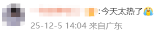 12月5日白天,茂名国家气象观测站录得全省最高气温26.8℃。梅州平远录得全省最低气温9.6℃。