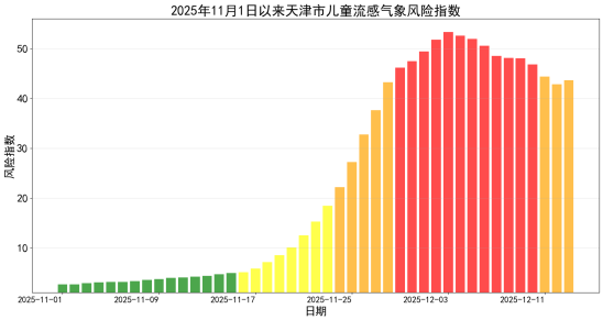 图2 2025年11月以来天津市儿童流感气象风险指数变化趋势