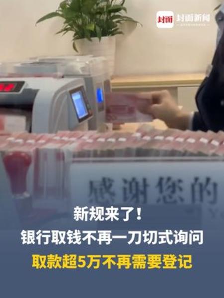 新规来了!银行取钱不再一刀切式询问,取款超5万不再需要登记 #银行新规 #取钱 #权威解读 #银行