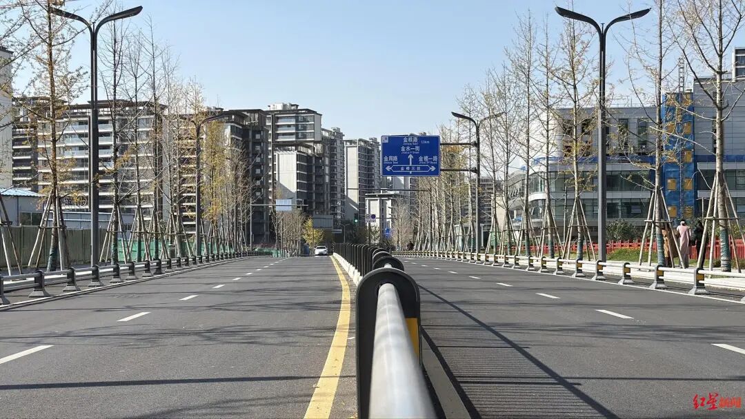 据介绍,该道路的贯通,不仅显著缓解了金禧片区的通行压力,也结束了片区2000余户居民前往金周路站乘坐地铁需绕行蜀西路或金禧一路的历史,减少了约1公里的绕行距离,提升了整体通行效率。