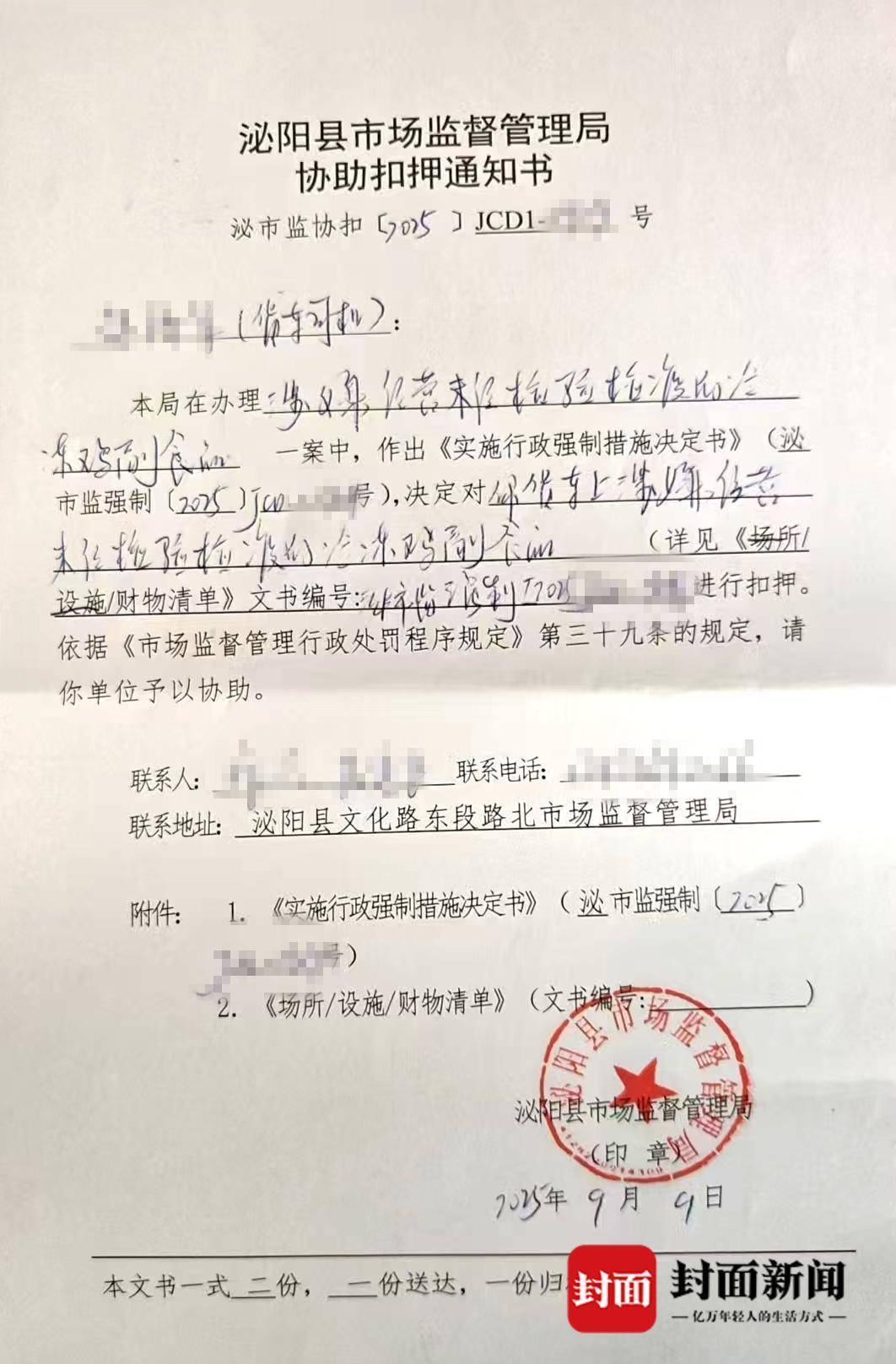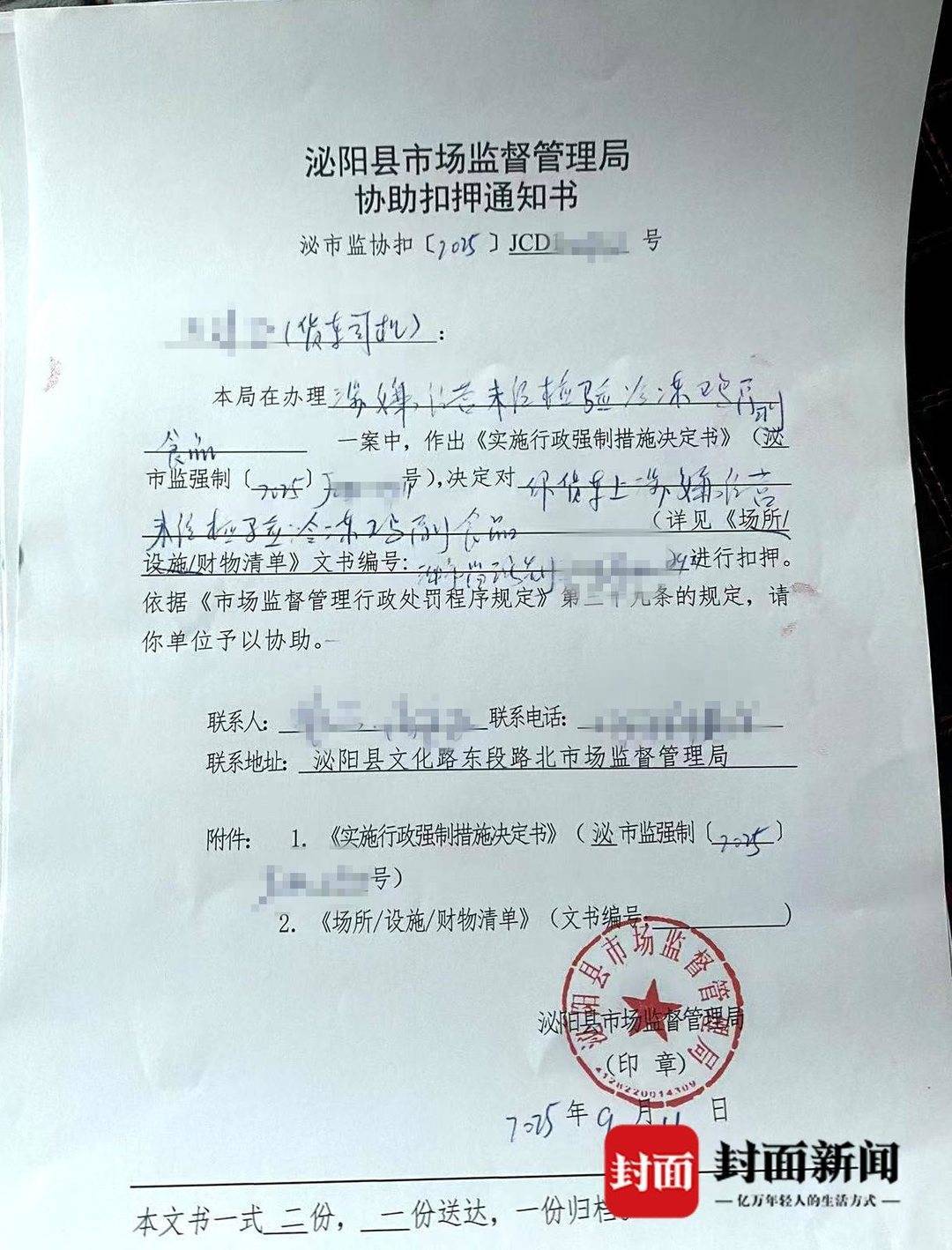 李先生称,泌阳县市场监管局要求他们到河南协助调查,但他始终没有抽出时间前往。截至目前,该批货物仍被扣押在泌阳县。“我们多次通电话,他们时而说案件已移交公安,时而又通知我们过去确认货物归属、接受调查。”
