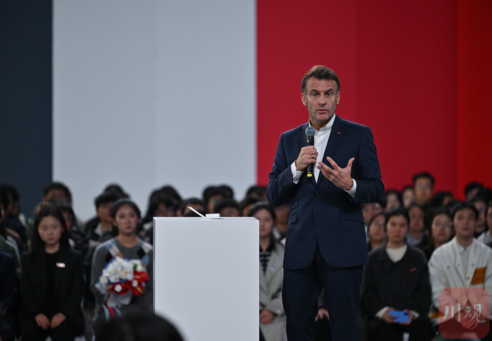 12月5日下午,法国总统马克龙在四川大学演讲。