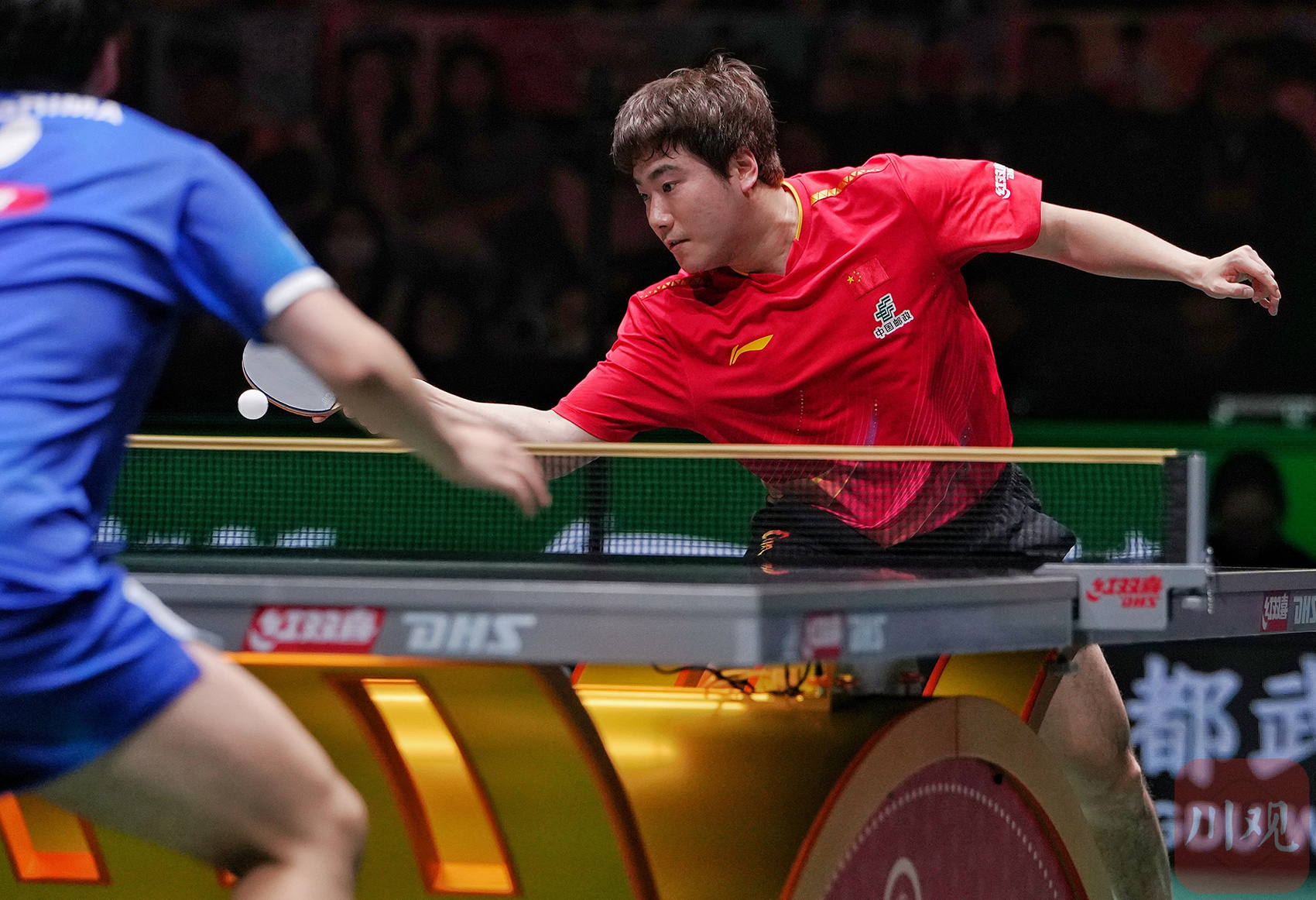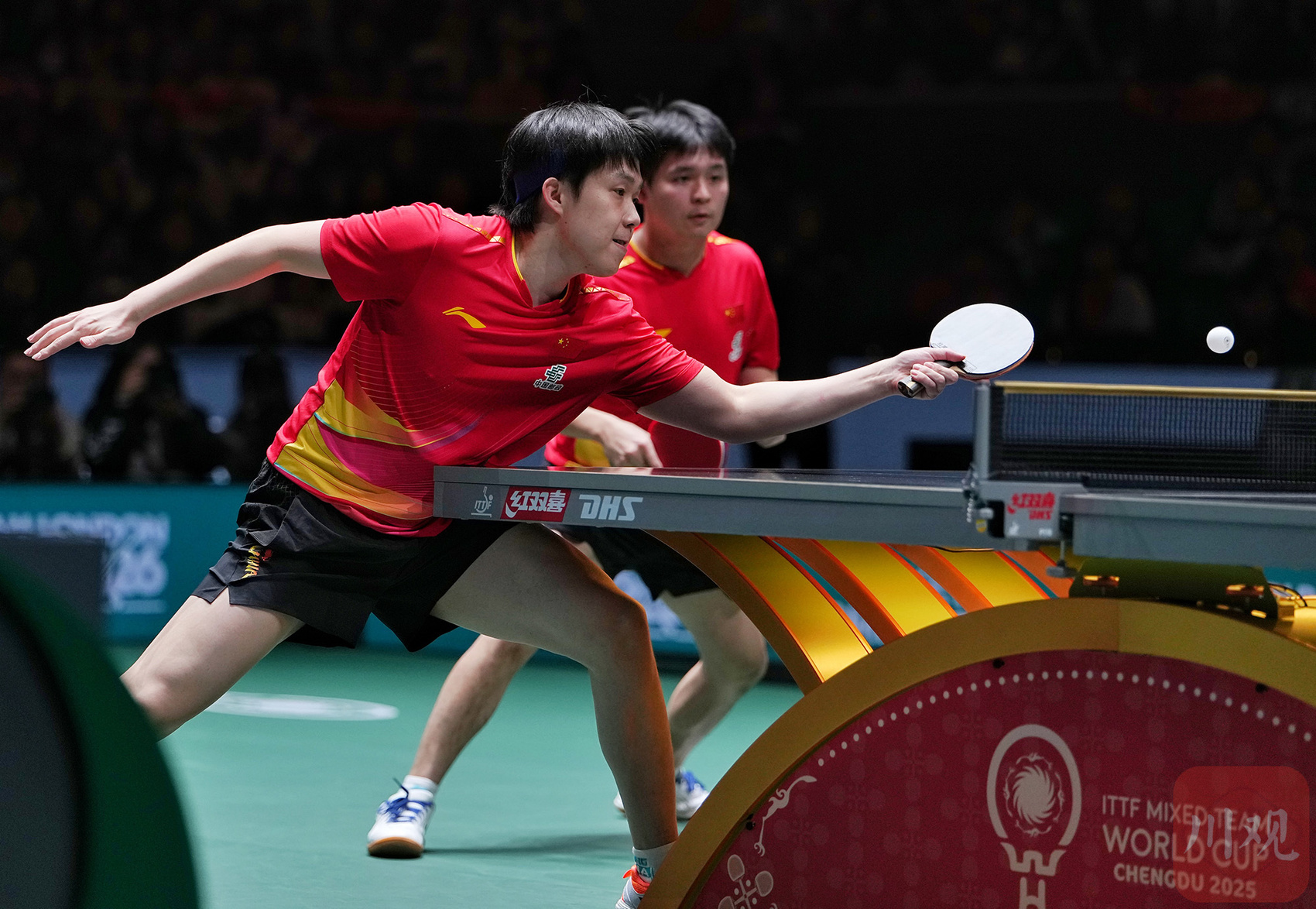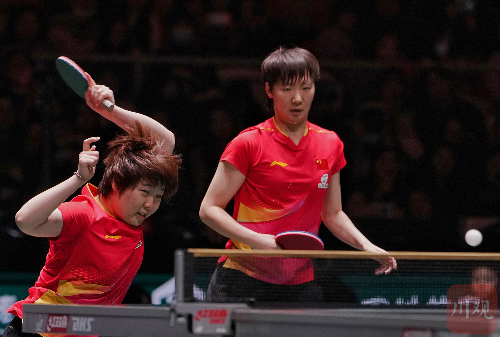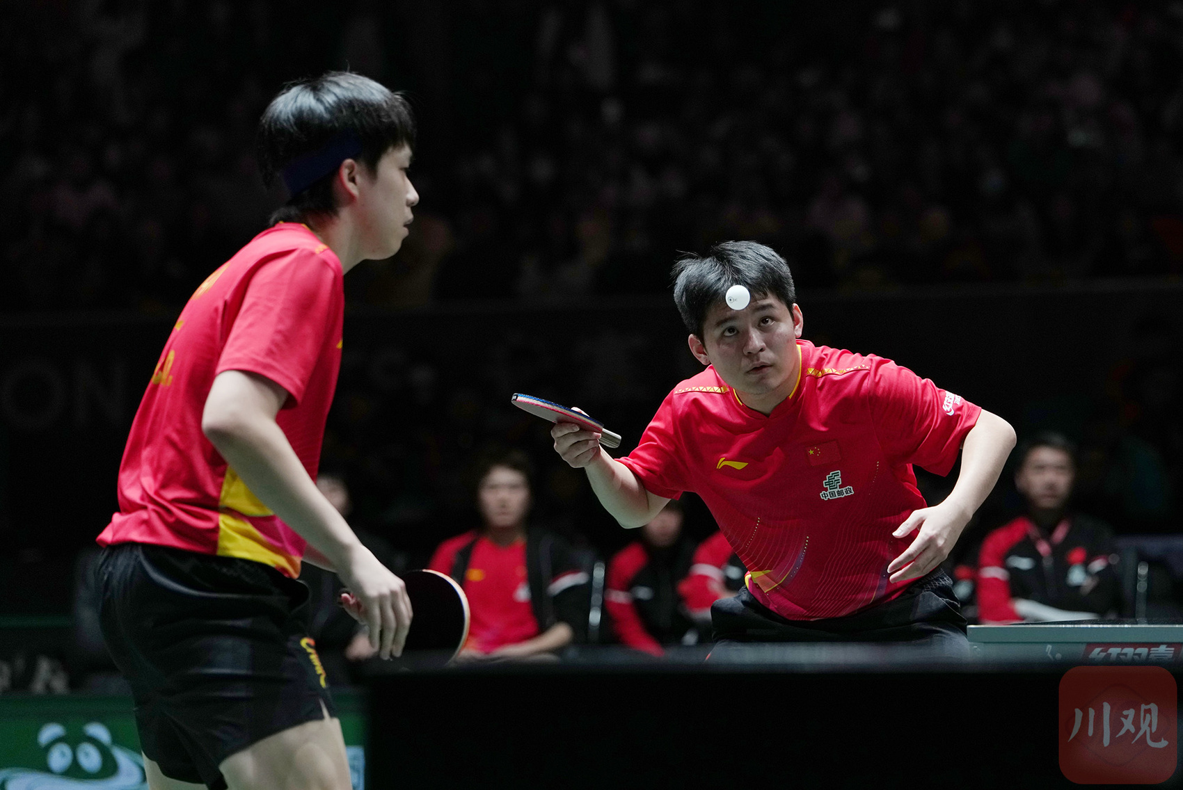 王楚钦/林诗栋在比赛中。