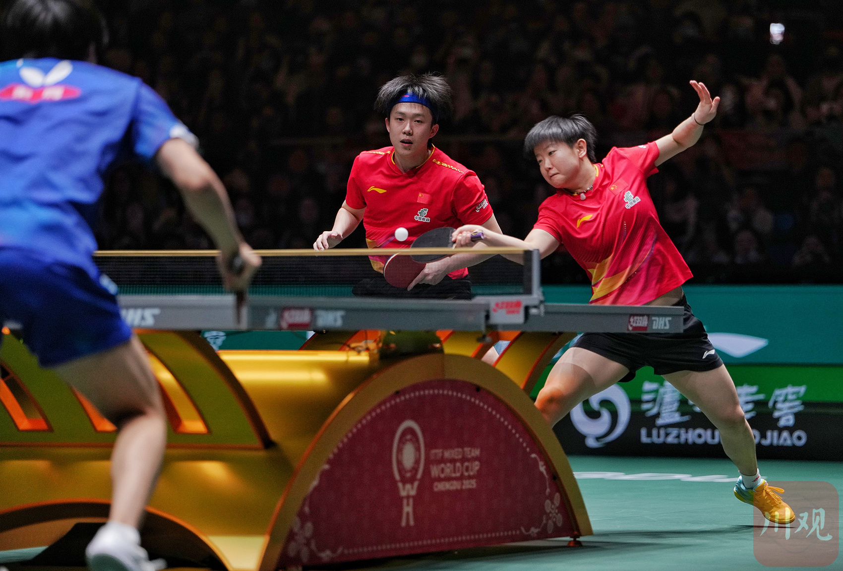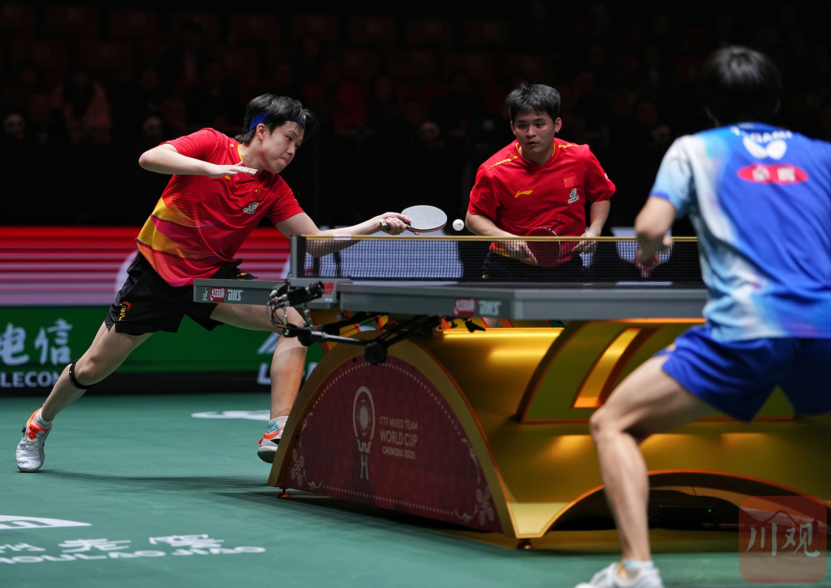 本场比赛开场即高潮,国乒混双组合王楚钦/孙颖莎迎战户上隼辅/张本美和。面对曾击败过自己的对手,“莎头组合”全程掌控节奏,以11:4、11:6、11:5的悬殊比分横扫对手,干净利落拿下首盘3分,为中国队奠定优势基础。