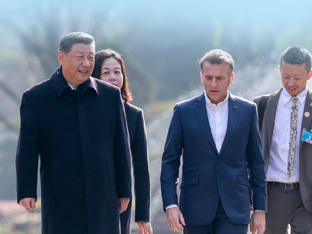 12月4日至5日,两天时间里,从北京到四川,习近平主席同马克龙总统进行了友好坦诚、富有成果的会谈,共同出席中法企业家委员会第七次会议闭幕式,在成都都江堰进行友好交流等,引领推动中法全面战略伙伴关系不断向前发展。